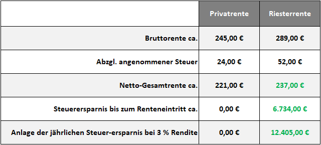 Ein Rechenbeispiel – Riesterrente vs. Privatrente